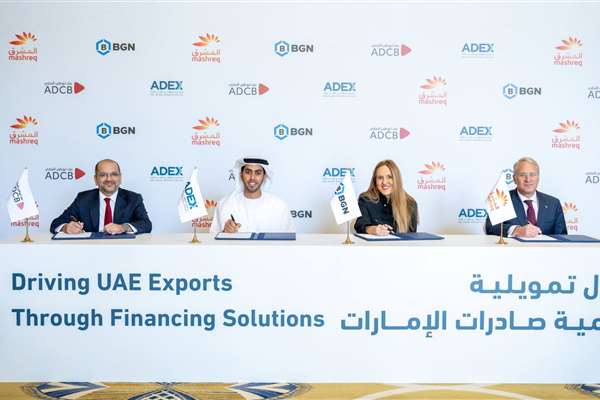 وقع مكتب أبوظبي للصادرات، التابع لصندوق أبوظبي للتنمية، بالتعاون مع شركائه المصرفيين الاستراتيجيين بنك أبوظبي التجاري وبنك المشرق، اتفاقية تسهيلات ائتمانية تصل قيمتها إلى 100 مليون دولار أمريكي لصالح شركة "بي جي إن " لتجارة الطاقة والسلع، وذلك بهدف تسهيل تصدير سلع الطاقة من دولة الإمارات إلى الأسواق العالمية.