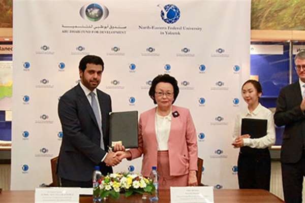ووقع سعادة خليفة القبيسي، نائب المدير عام صندوق أبوظبي للتنمية وسعادة إفجينيا ميخائيلوفا، رئيسة جامعة أوموسوف الشمالية الشرقية الفيدرالية بالإنابة، مذكرة تفاهم بهذا الخصوص في مدينة ياكوتسك الروسية .