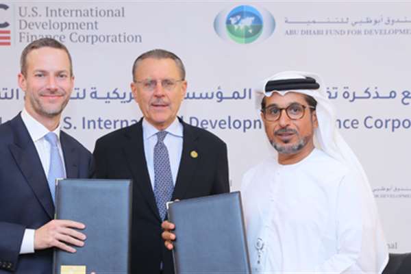 وقع صندوق أبوظبي للتنمية اليوم مذكرة تفاهم مع المؤسسة الأمريكية لتمويل التنمية الدولية بهدف تعزيز التعاون المشترك وتبادل المعلومات والخبرات الفنية في مجال تمويل استثمارات القطاع الخاص والمشاريع التنموية في الدول النامية، وإمكانية الدخول في تمويلات واستثمارات مشتركة في سبيل تحقيق الأهداف الإنمائية للمؤسستين.