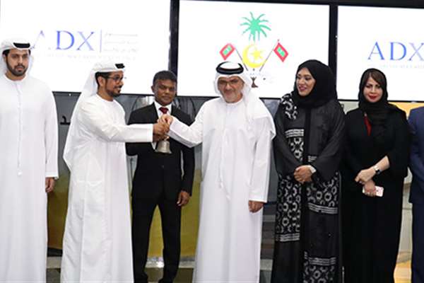وقرع سعادة الدكتور حسين نياز سفير جمهورية المالديف لدى دولة الإمارات العربية المتحدة، جرس بدء التداول في السوق؛ إيذاناً بادراج السندات، وذلك بحضور سعادة محمد سيف السويدي، مدير عام صندوق أبوظبي للتنمية، وراشد البلوشي الرئيس التنفيذي لسوق أبوظبي للأوراق المالية، وممثلين عن بنك "أبوظبي الأول" بصفته مدير الإصدار الرئيسي، والمسجل ووكيل الدفع والتسوية.